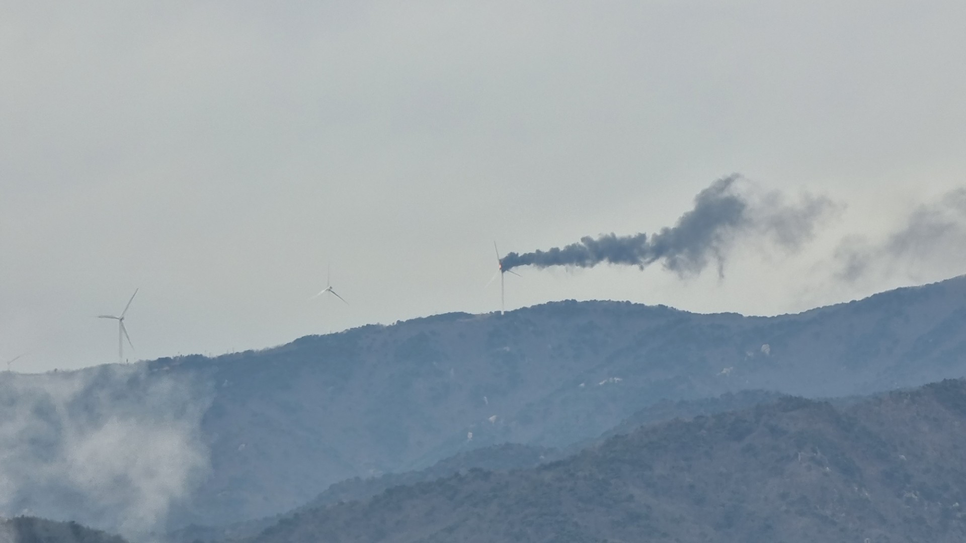 양산 에덴벨리 풍력발전기에서 불, '산불 우려'