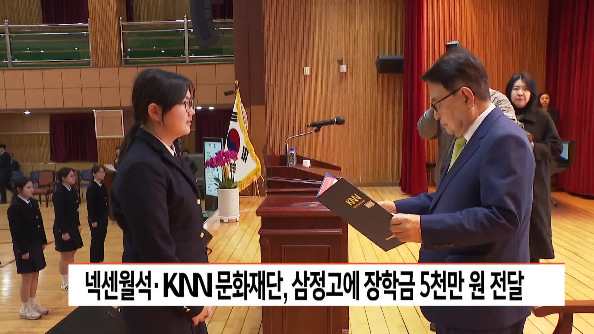 넥센월석재단과 KNN문화재단이 부산 삼정고등학교에 장학금을 전달했습니다. 어제(2) 열린 장학금 수여식에서는 넥센월석재단이 4천만원, KNN문화재단이 천만원을 마련해 학생 50명에게 백만원씩 모두 5천만원을 전달했습니다.
