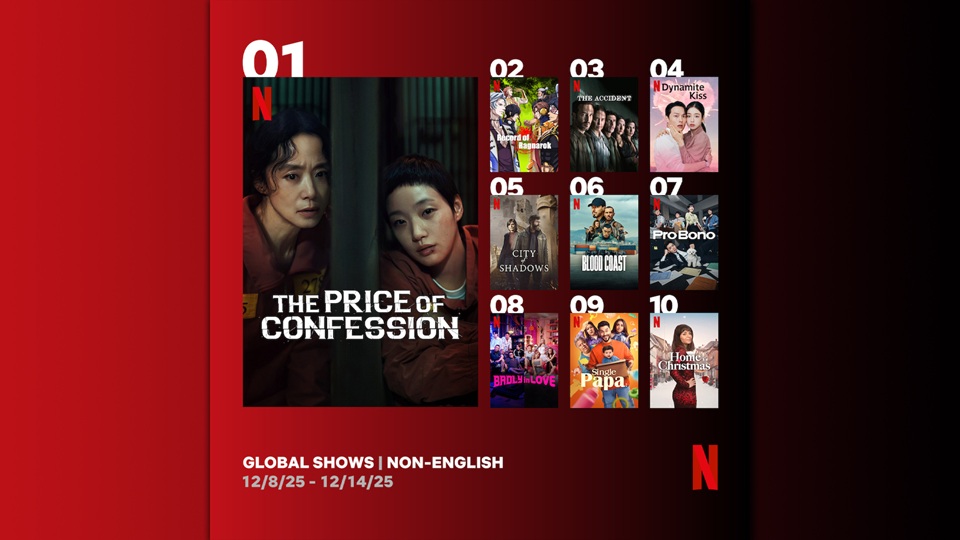 넷플릭스 오리지널 시리즈 ‘자백의 대가’가 지난주 전 세계 넷플릭스 이용자가 가장 많이 시청한 비영어 시리즈로 집계됐습니다. 17일 넷플릭스 공식 사이트 투둠(Tudum)이 발표한 ‘넷플릭스 톱 10’에 따르면, 지난 8일부터 14일까지 ‘자백의 대가’의 시청 수(Views·총 시청 시간을 러닝타임으로 나눈 값)는 570만으로 비영어 쇼 부문 1위를 기록했습니다. 국가별로는 볼리비아와 도미니카공화국, 에콰도르, 한국 등 전 세계 39개국에서 비영어 쇼 1위에 올랐습니다. ‘자백의 대가’는 남편을 살해한 용의자로 몰린 안윤수(전도연)가 교도소에서 만난 살인범 모은(김고은)으로부터 거래를 제안받으며 벌어지는 이야기를 그린 미스터리 스릴러입니다. 이 작품은 전도연과 김고은의 탄탄한 연기력에 반전을 거듭하는 긴장감 있는 전개가 더해지며 화제를 모았습니다. 그 결과 공개 첫 주 비영어 쇼 부문 2위로 출발한 뒤, 2주 차에 시청 수 570만을 기록하며 1위로 올라섰습니다. 이와 함께 비영어 쇼 부문에서는 장기용·안은진 주연의 로맨틱 코미디 ‘키스는 괜히 해서!’가 440만 시청 수로 4위를 차지했고, 정경호 주연의 법정 드라마 ‘프로보노’는 160만 시청 수로 7위에 올랐습니다.